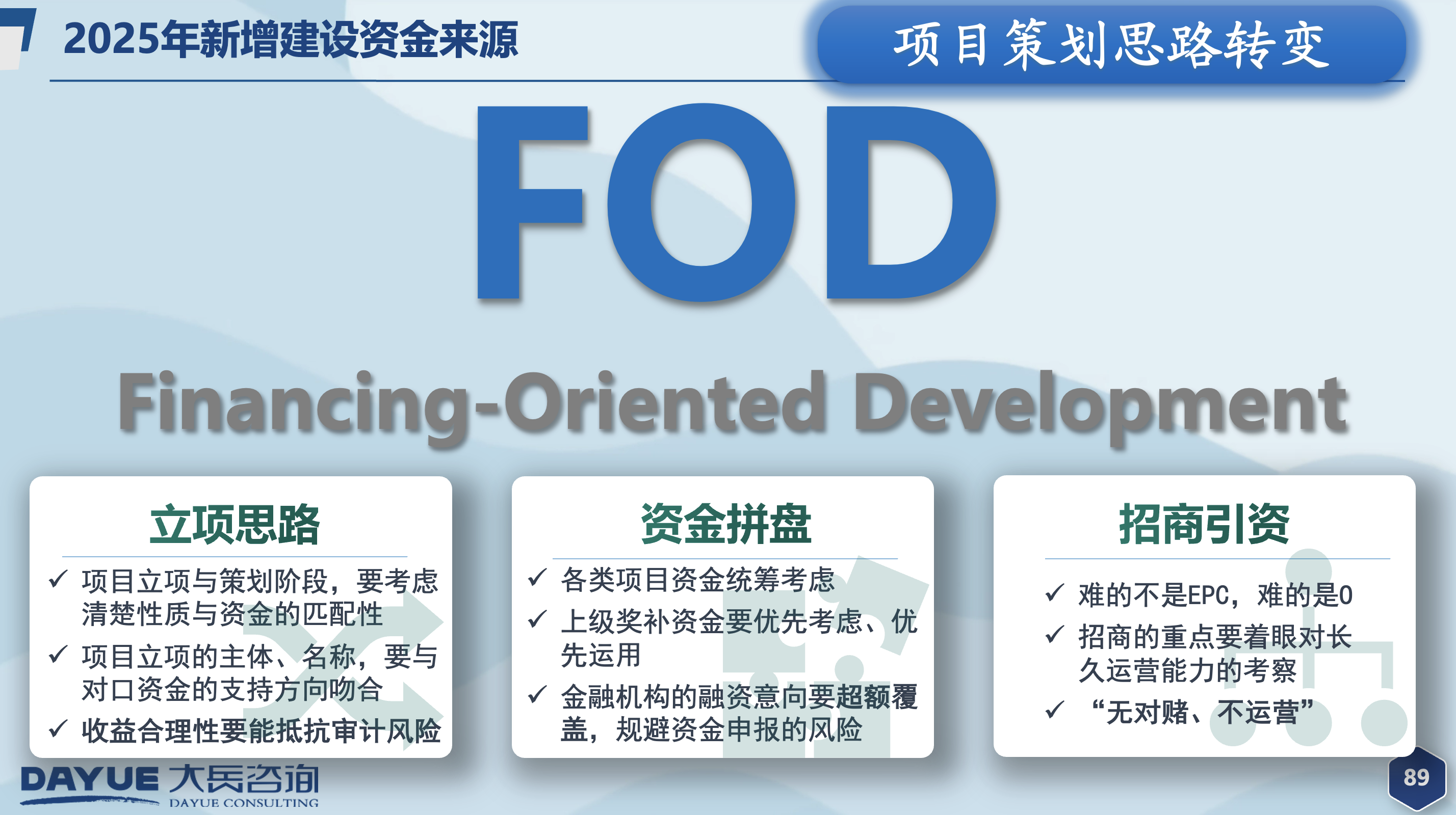 大岳咨詢以“提高投資與管理效率,助力經(jīng)濟(jì)和社會(huì)發(fā)展”為使命。近年來(lái),公司持續(xù)為全國(guó)多地提供專(zhuān)項(xiàng)債、超長(zhǎng)期特別國(guó)債、中央預(yù)算內(nèi)投資以及城市更新、全域土地綜合整治等熱點(diǎn)領(lǐng)域的咨詢服務(wù),積累了豐富的政策研究經(jīng)驗(yàn)及項(xiàng)目實(shí)操經(jīng)驗(yàn)。未來(lái),大岳咨詢將繼續(xù)專(zhuān)注于為城市高效建設(shè)添磚加瓦,為地方高質(zhì)量發(fā)展提供堅(jiān)實(shí)專(zhuān)業(yè)支撐。