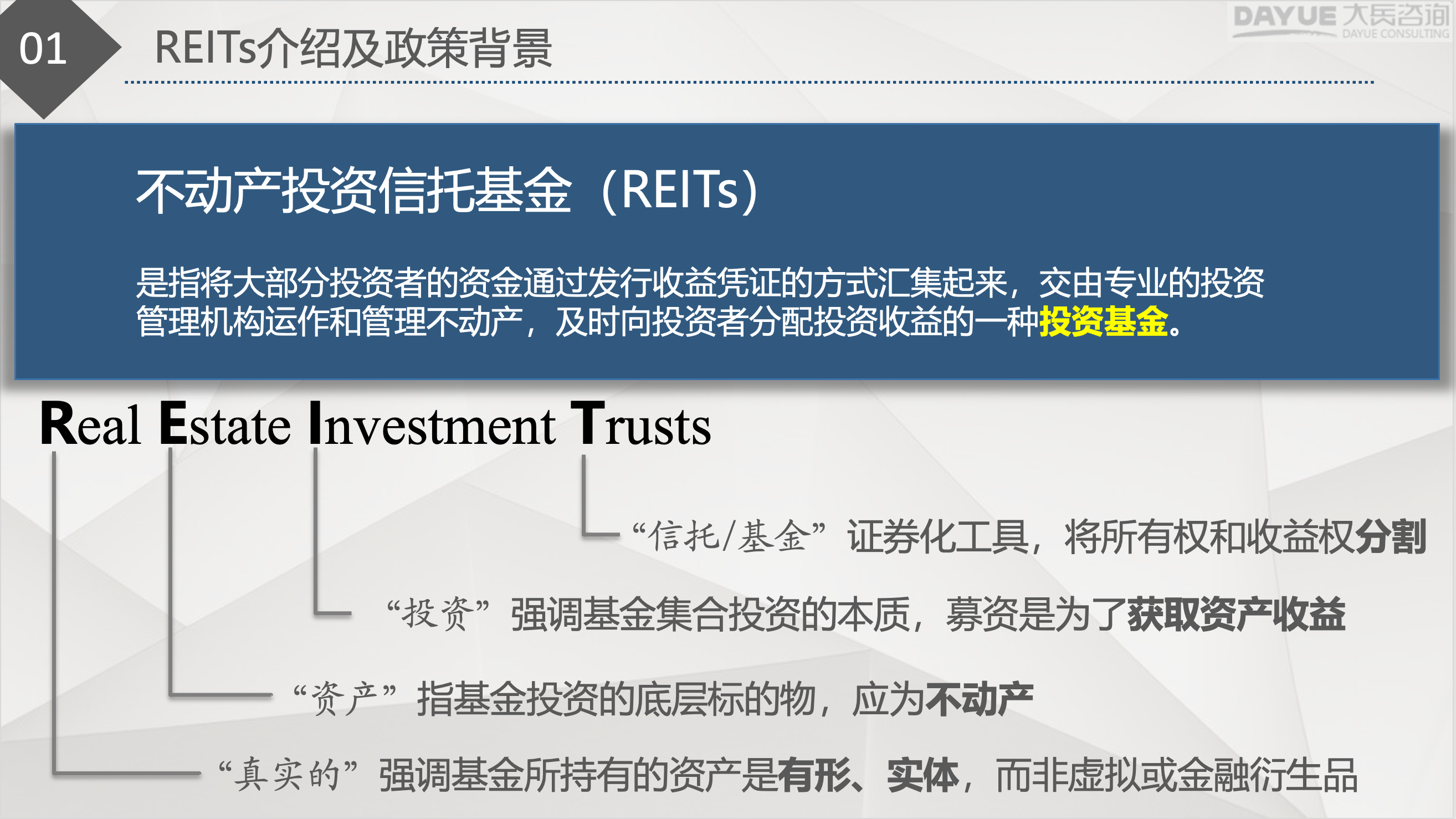 會(huì)議伊始,曹總系統(tǒng)介紹了REITs的發(fā)展背景與政策演進(jìn),重點(diǎn)解讀了2024年REITs常態(tài)化發(fā)行及2025年行業(yè)范圍擴(kuò)圍等政策文件。隨后以REITs統(tǒng)計(jì)數(shù)據(jù)為切入點(diǎn),介紹了REITs逐年發(fā)行數(shù)據(jù),進(jìn)一步詮釋了政策對(duì)REITs項(xiàng)目上市發(fā)行的影響,為與會(huì)人員系統(tǒng)理解REITs奠定了扎實(shí)基礎(chǔ)。